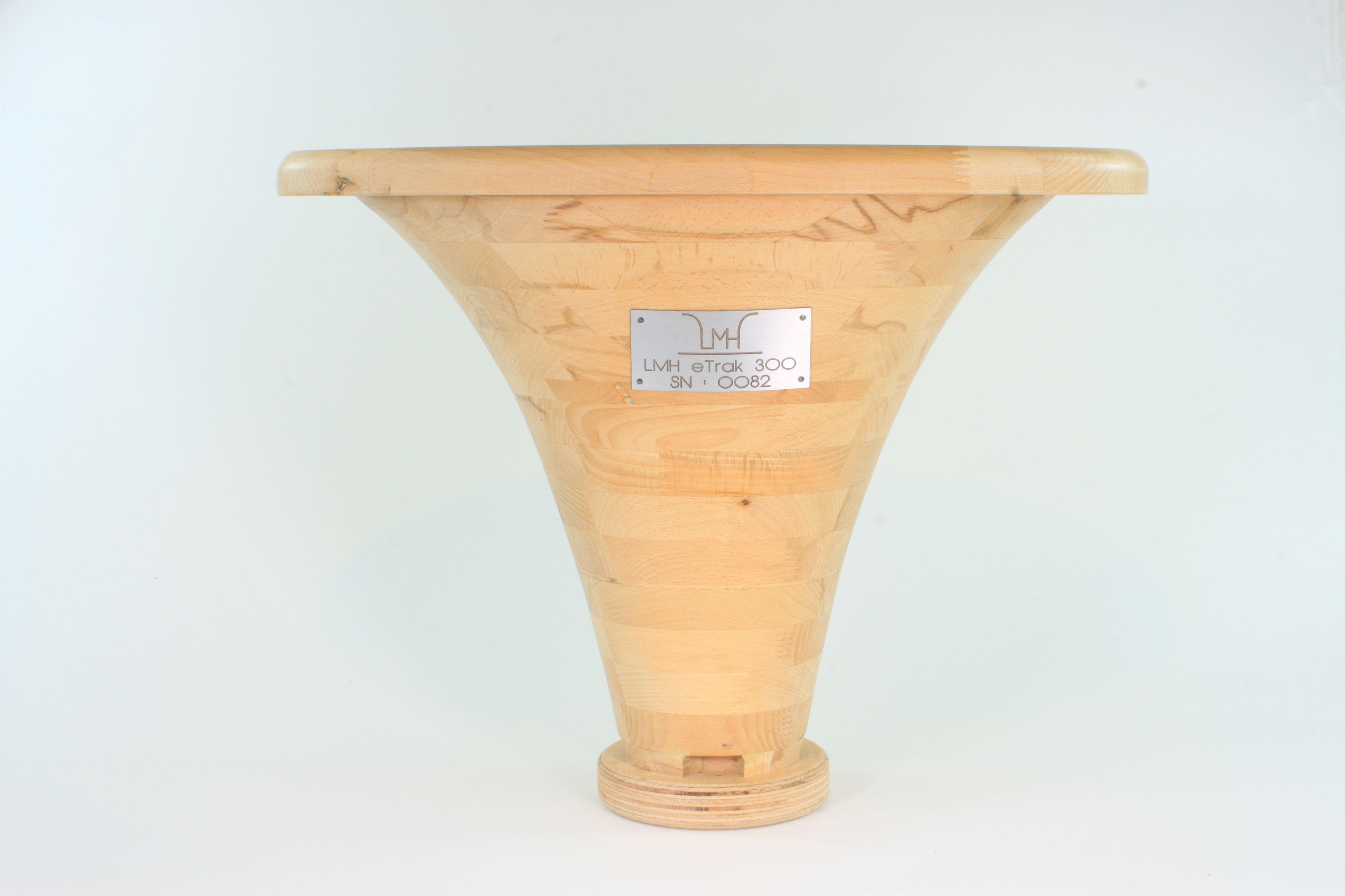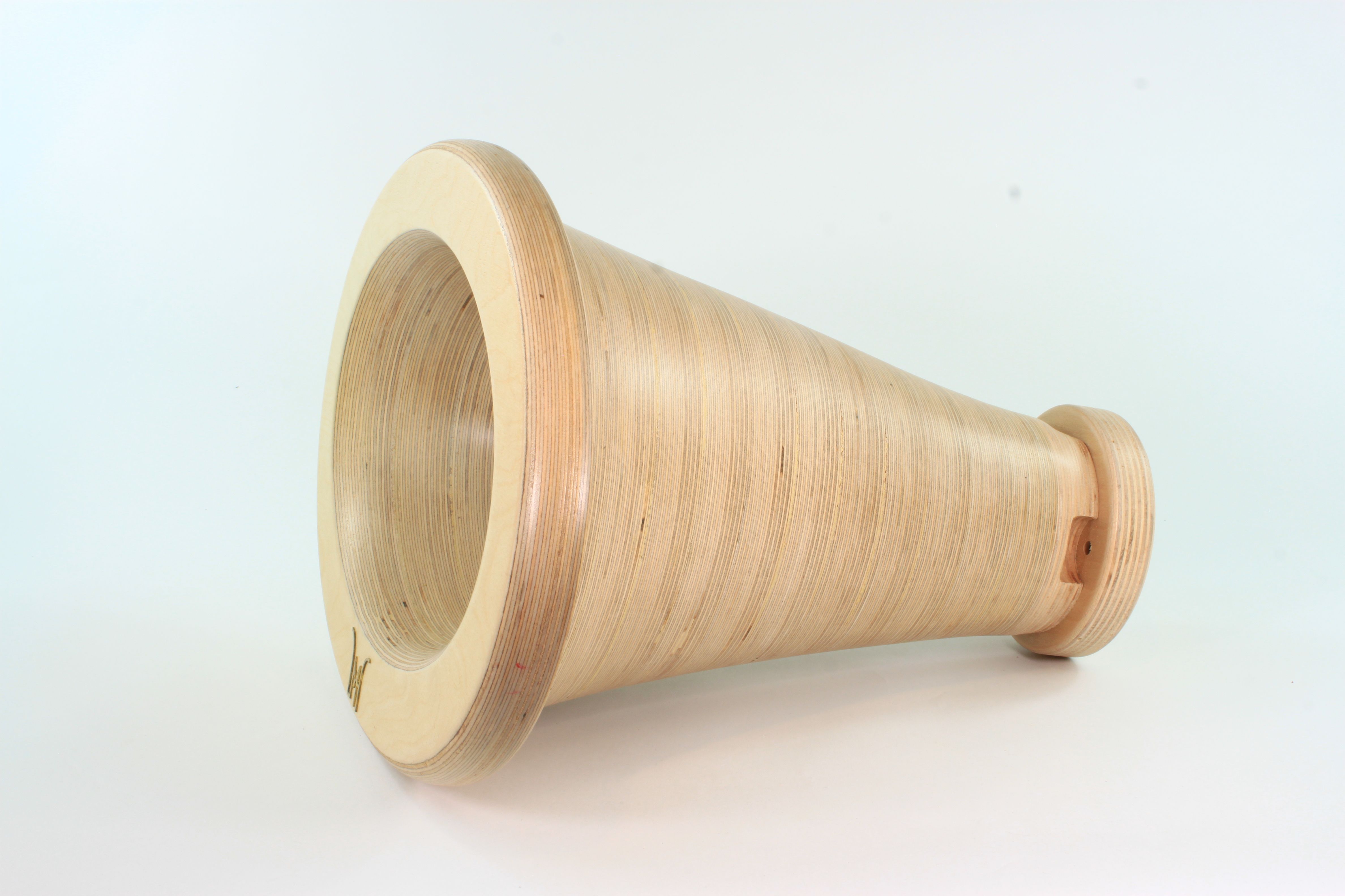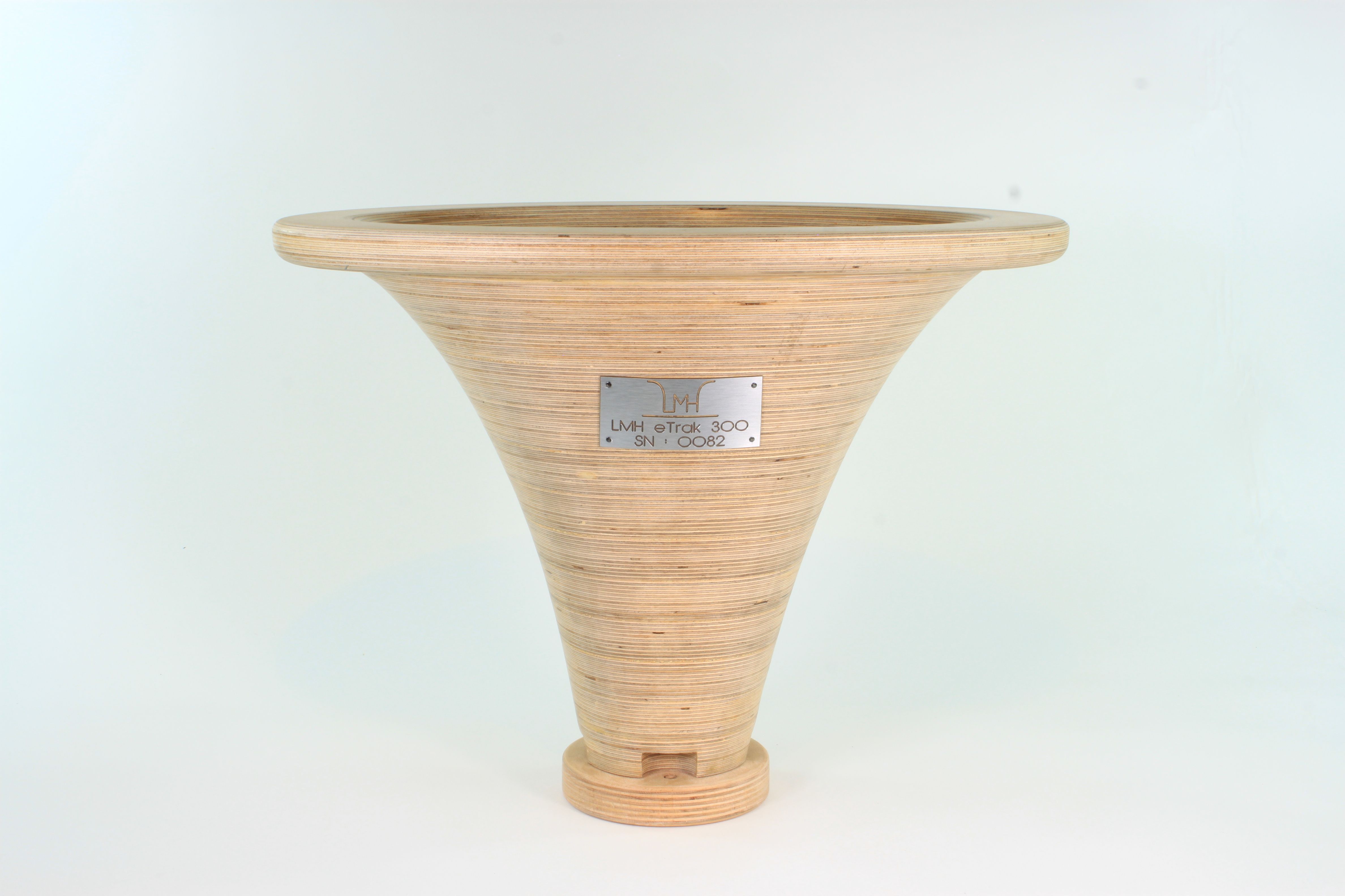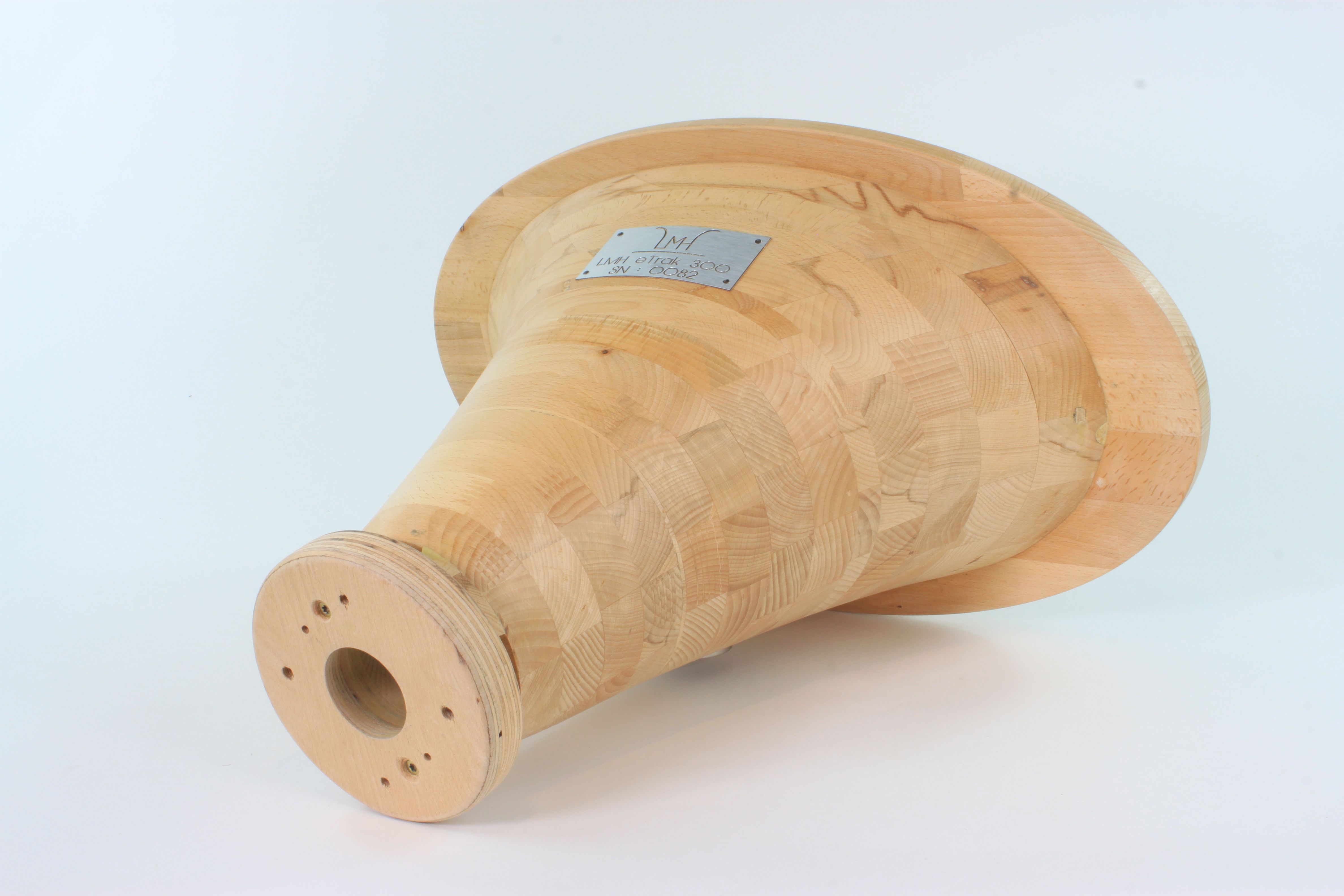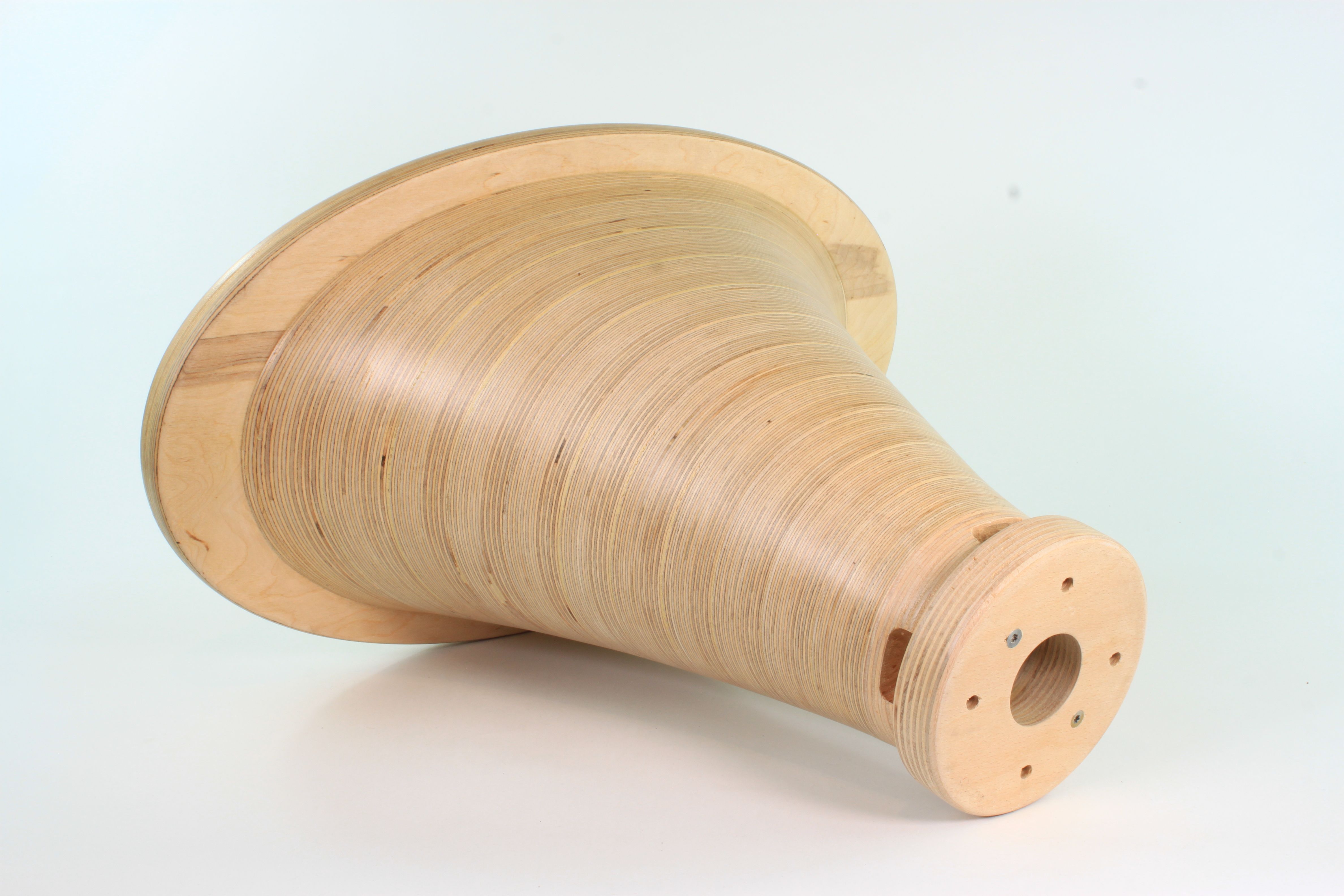 In einem speziell von uns entwickeltem Verfahren aus Vollholz gefertigte sphärisch-elliptische Mittel-Hochtonhörner höchster Güte.