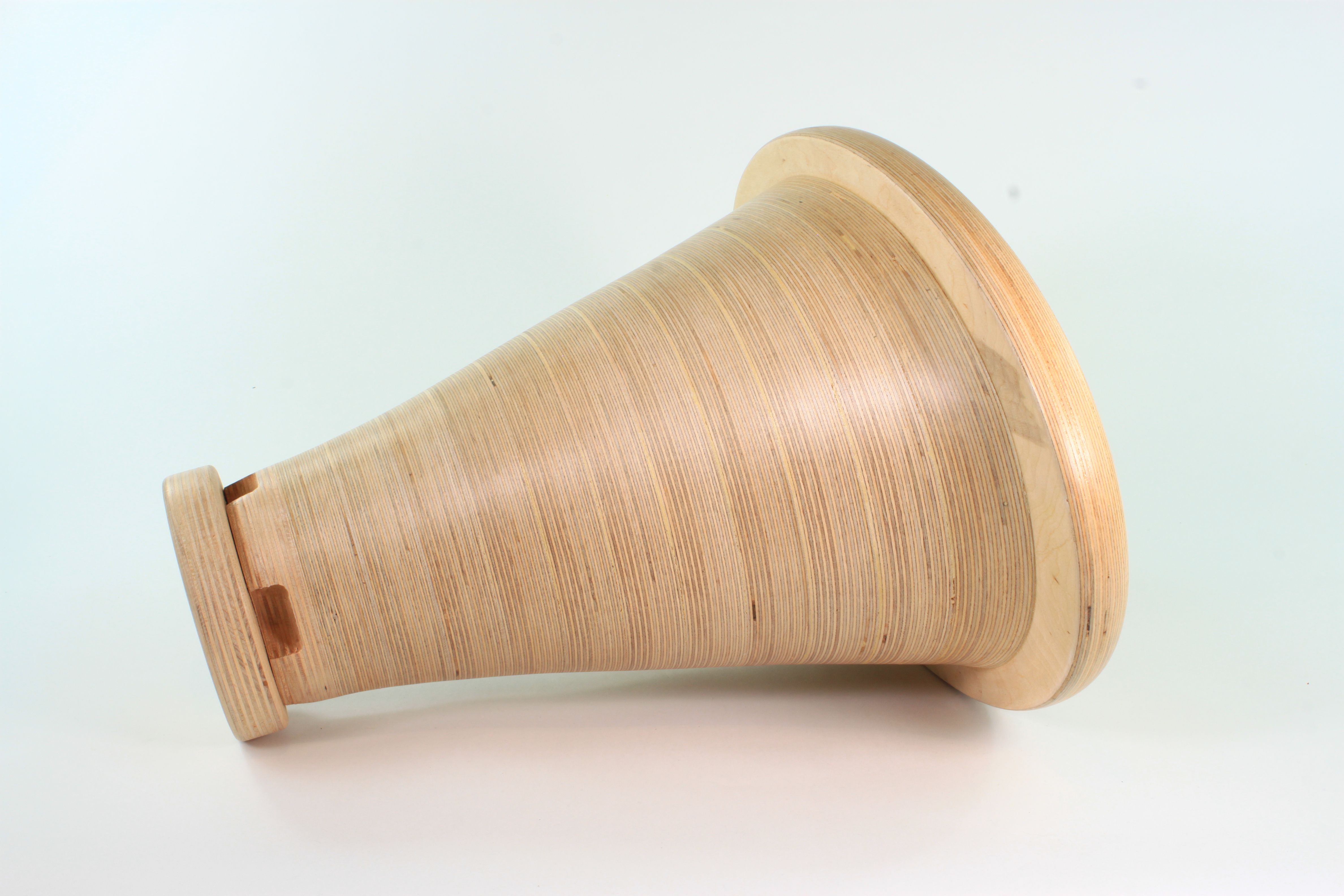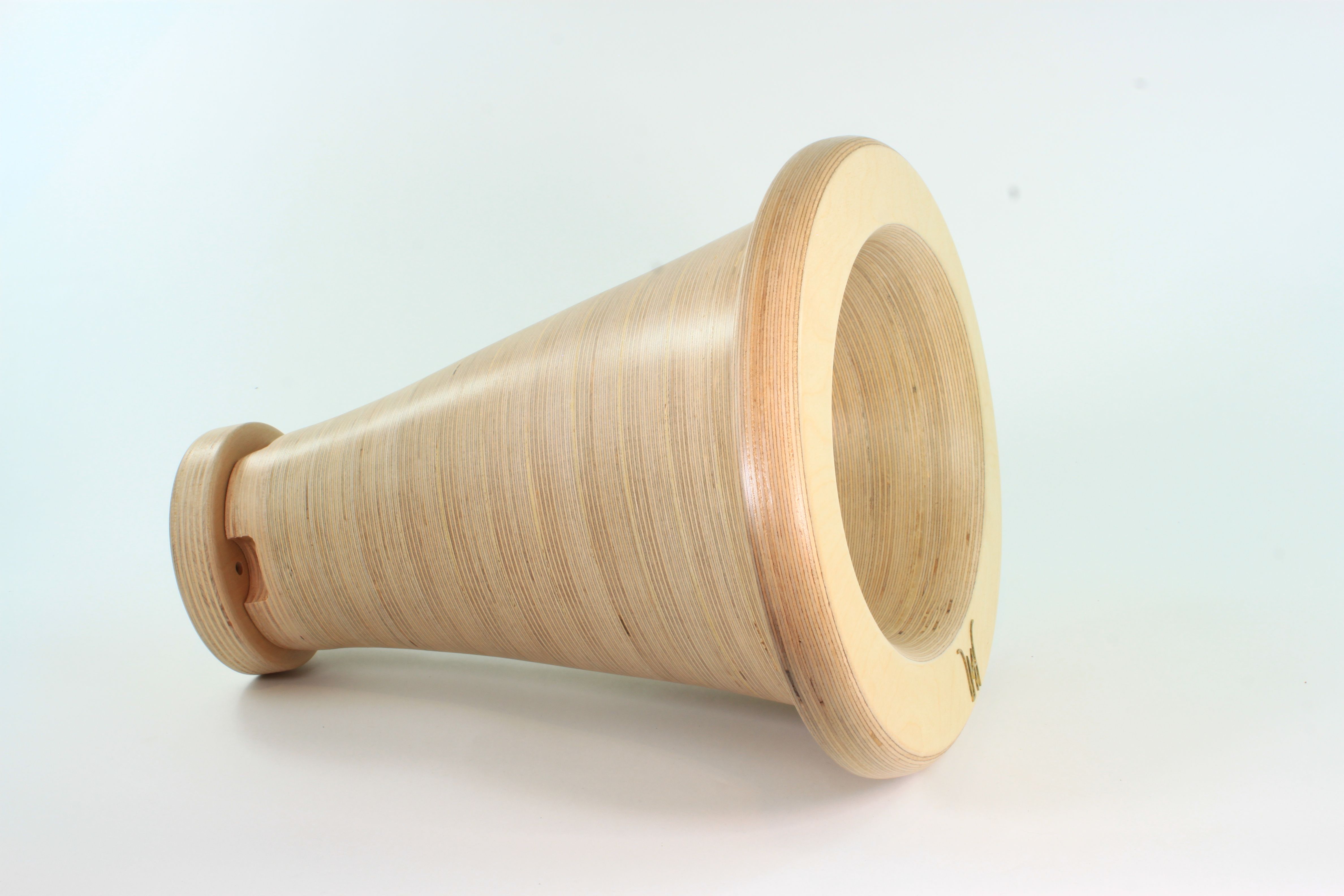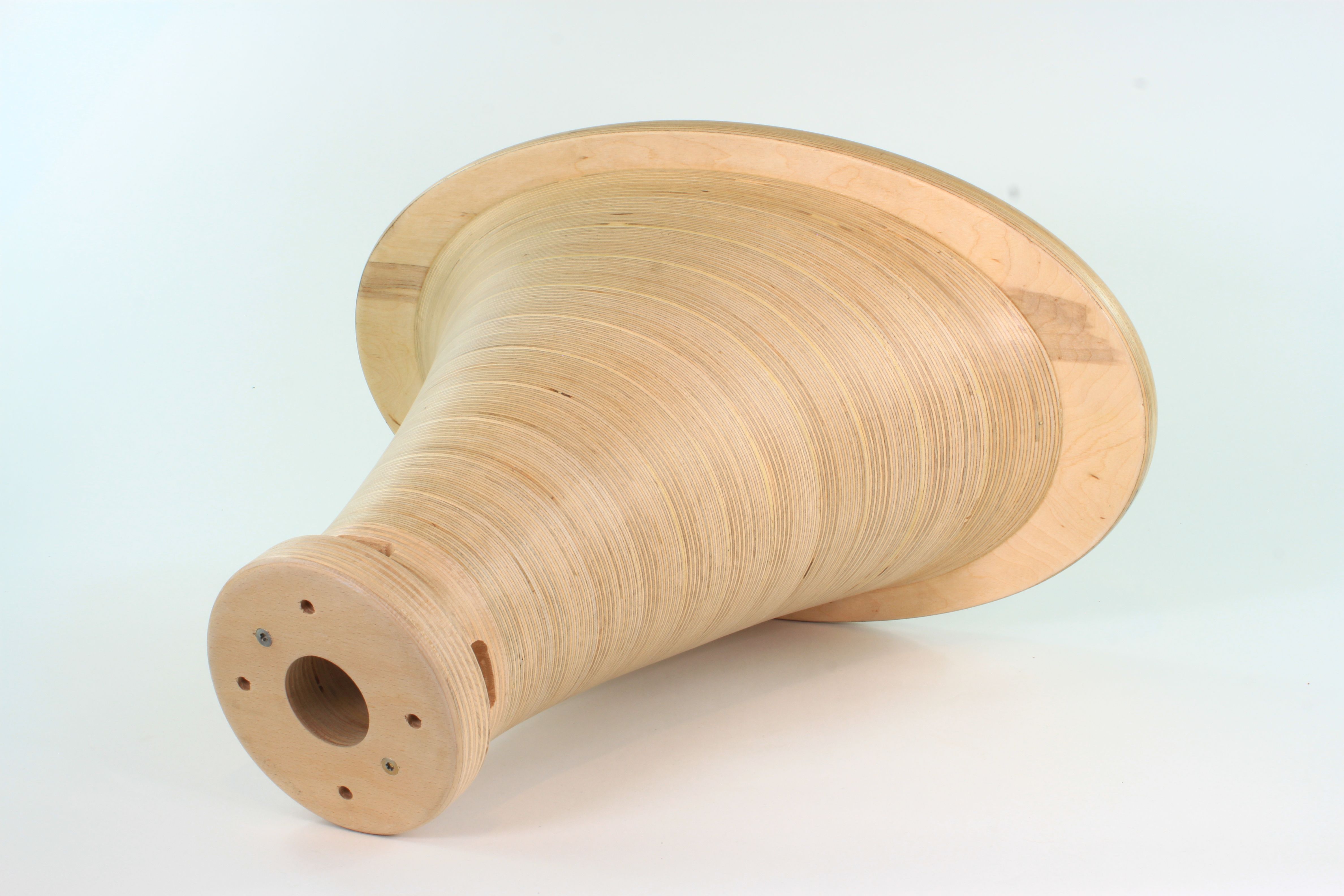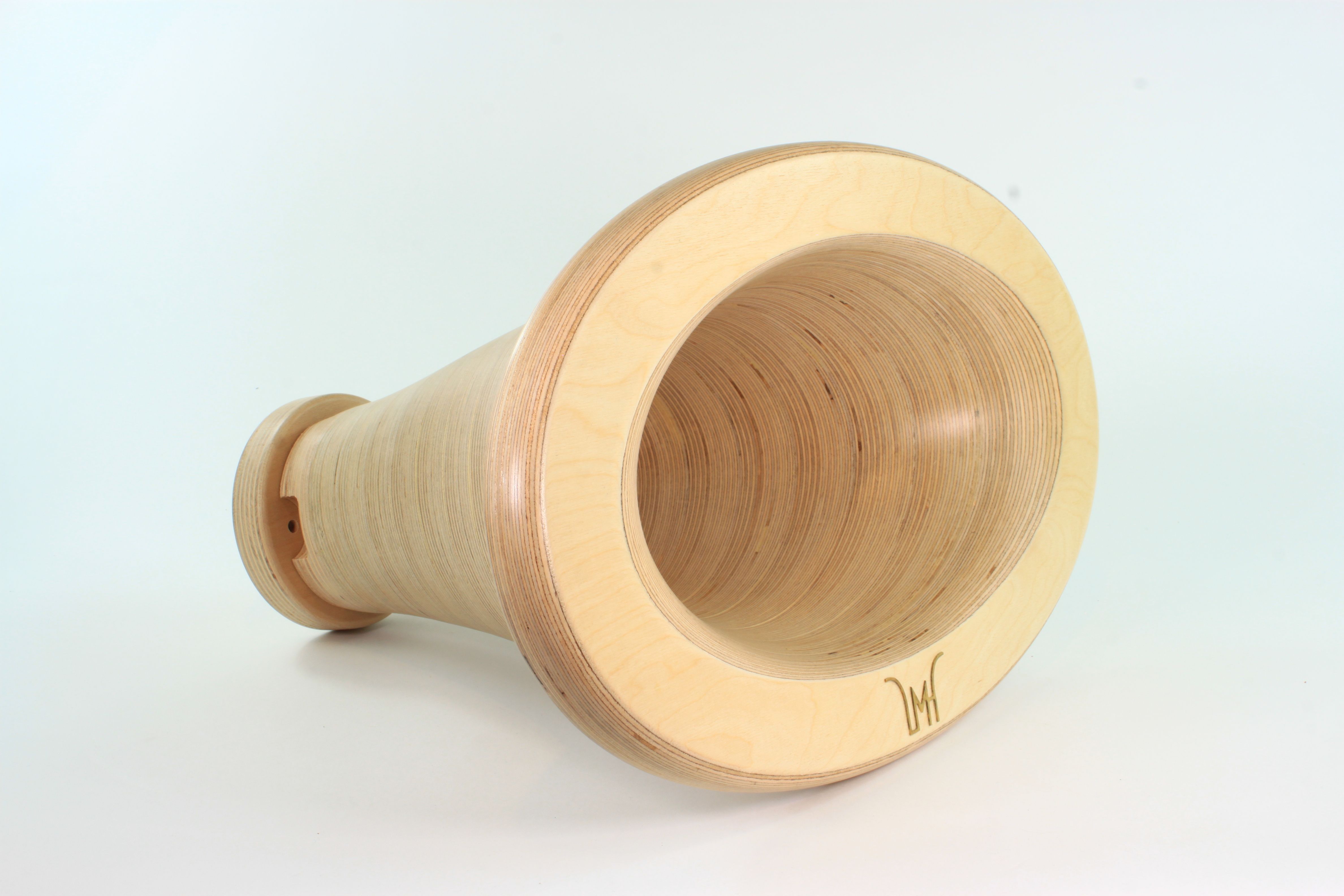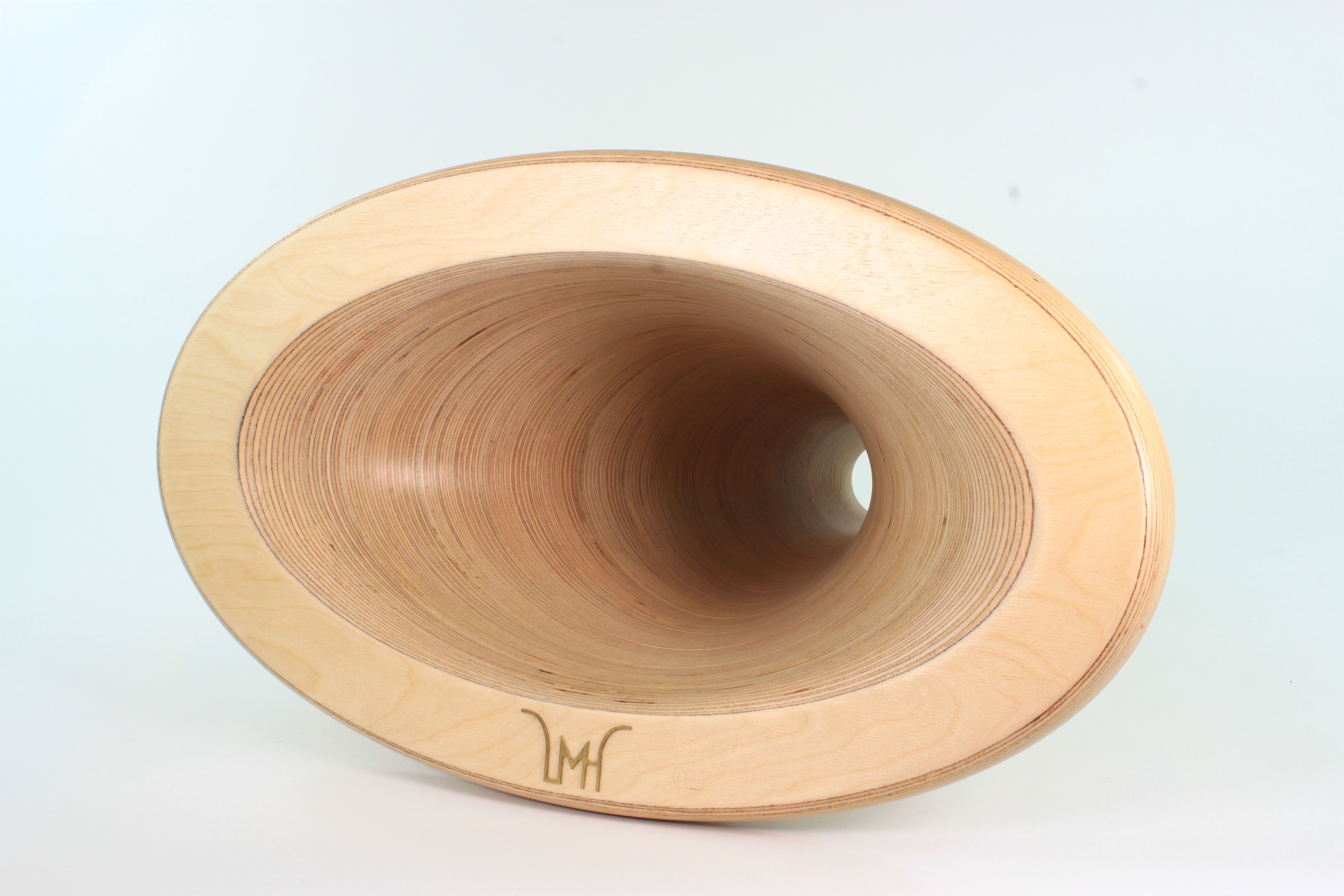 In einem speziell von uns entwickeltem Verfahren aus Vollholz gefertigte sphärisch-elliptische Mittel-Hochtonhörner höchster Güte.