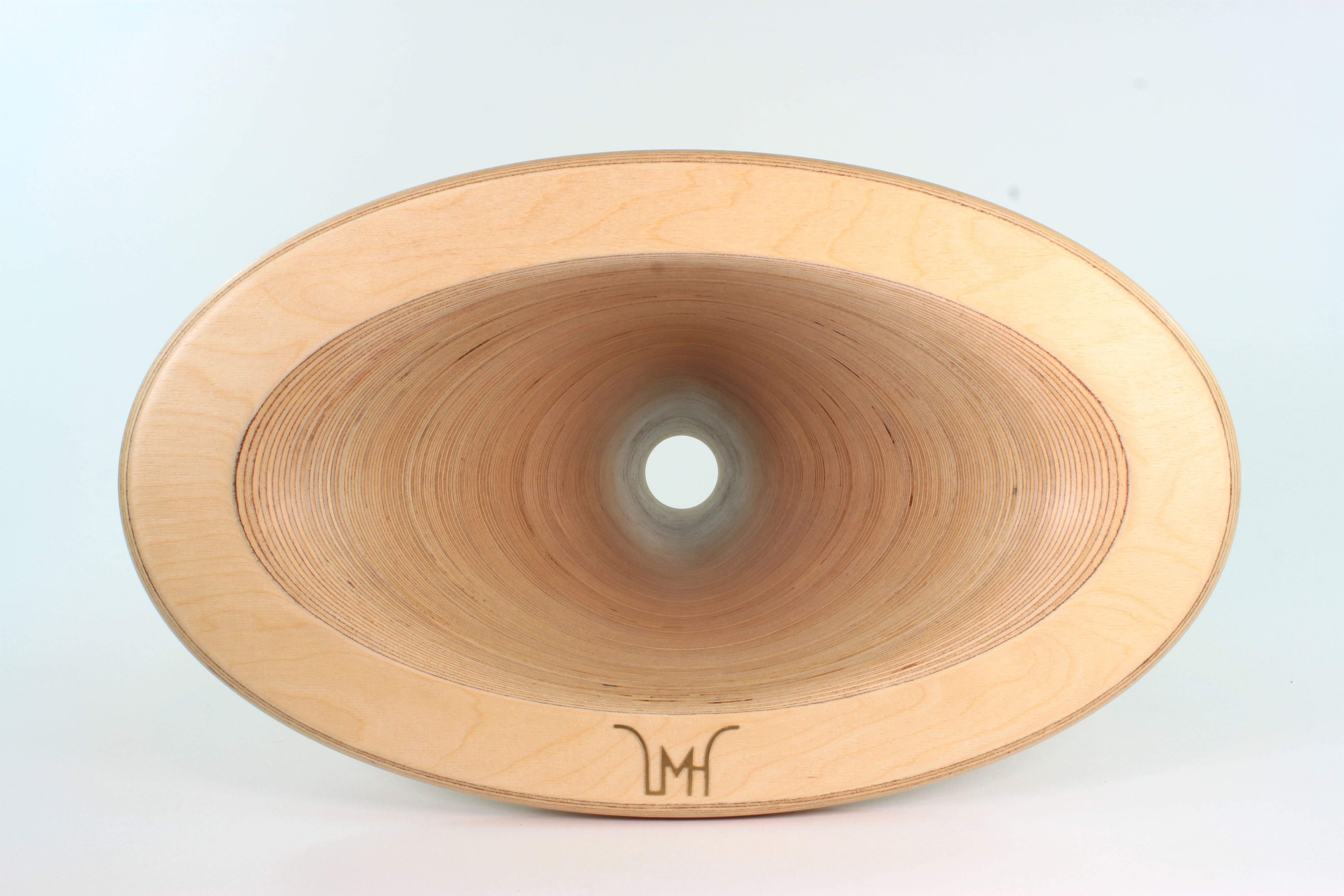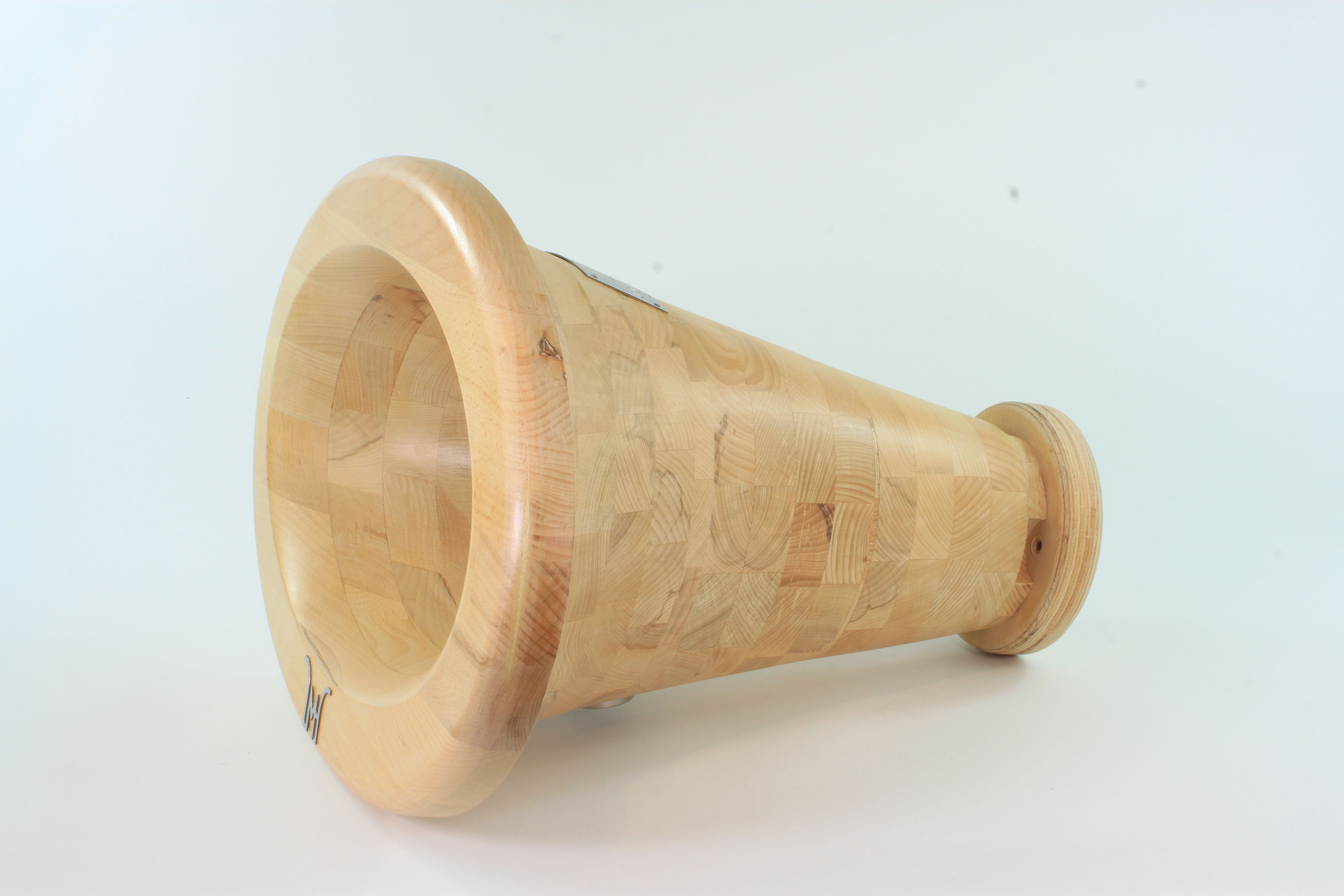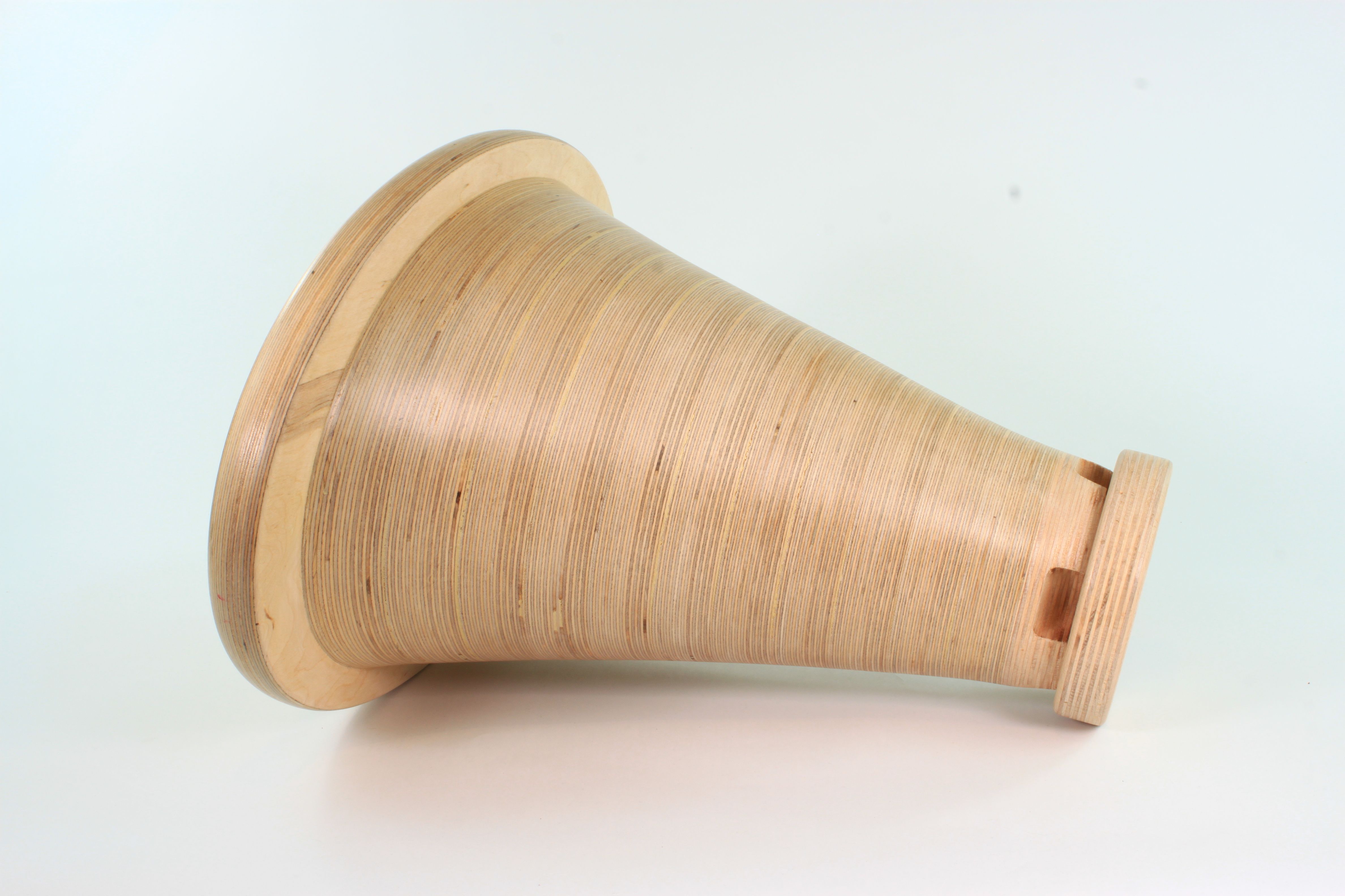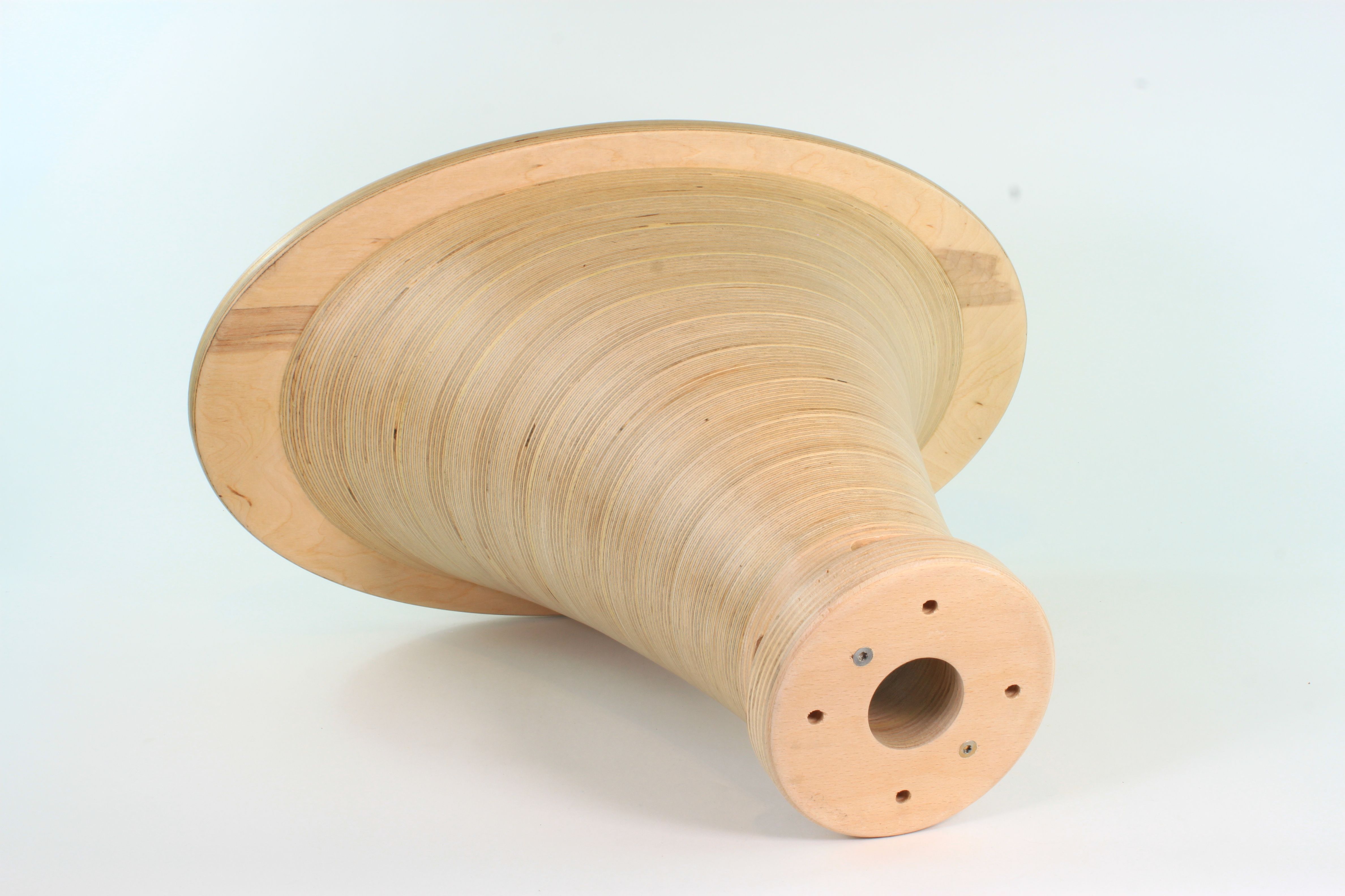 In einem speziell von uns entwickeltem Verfahren aus Vollholz gefertigte sphärisch-elliptische Mittel-Hochtonhörner höchster Güte.