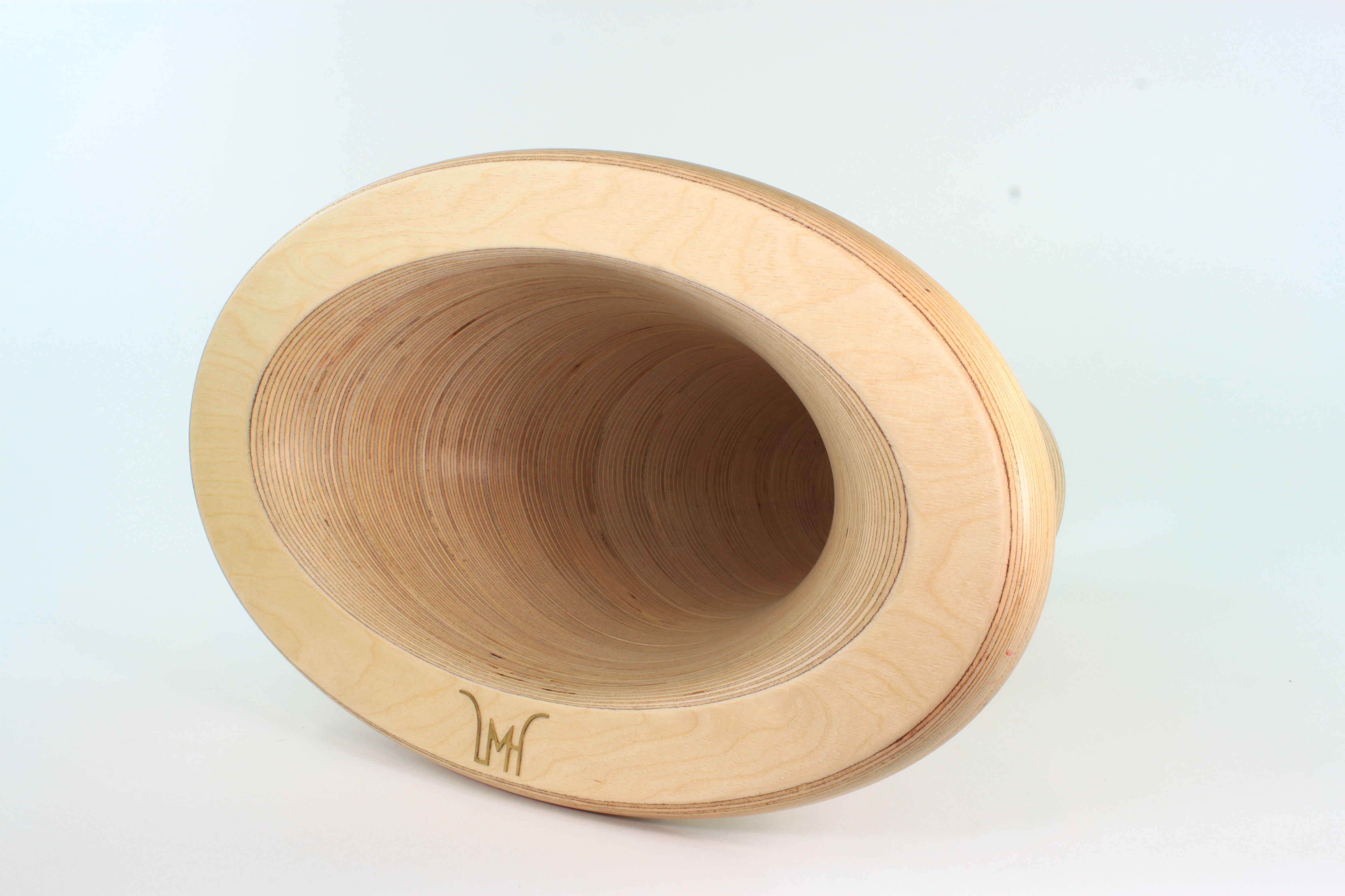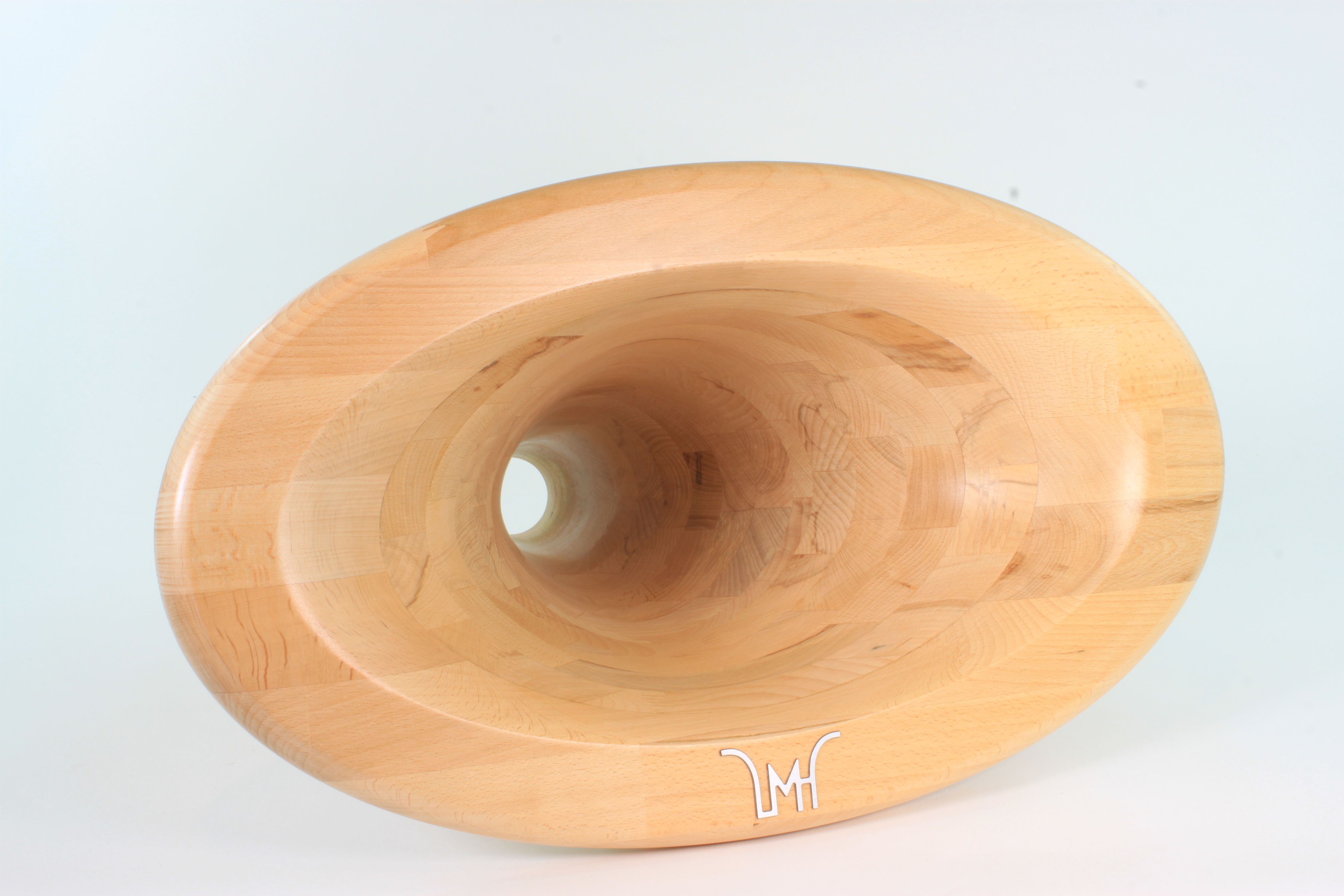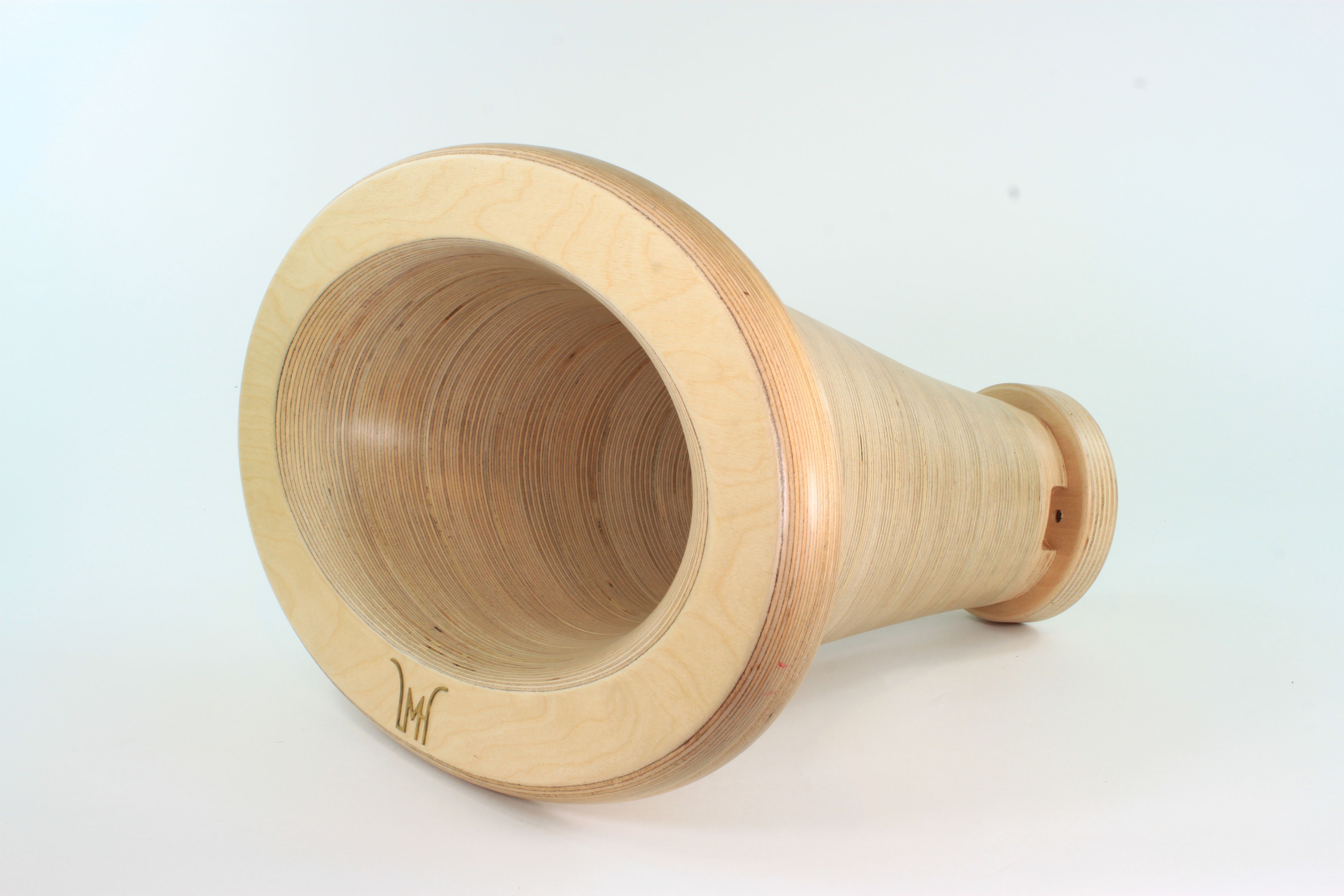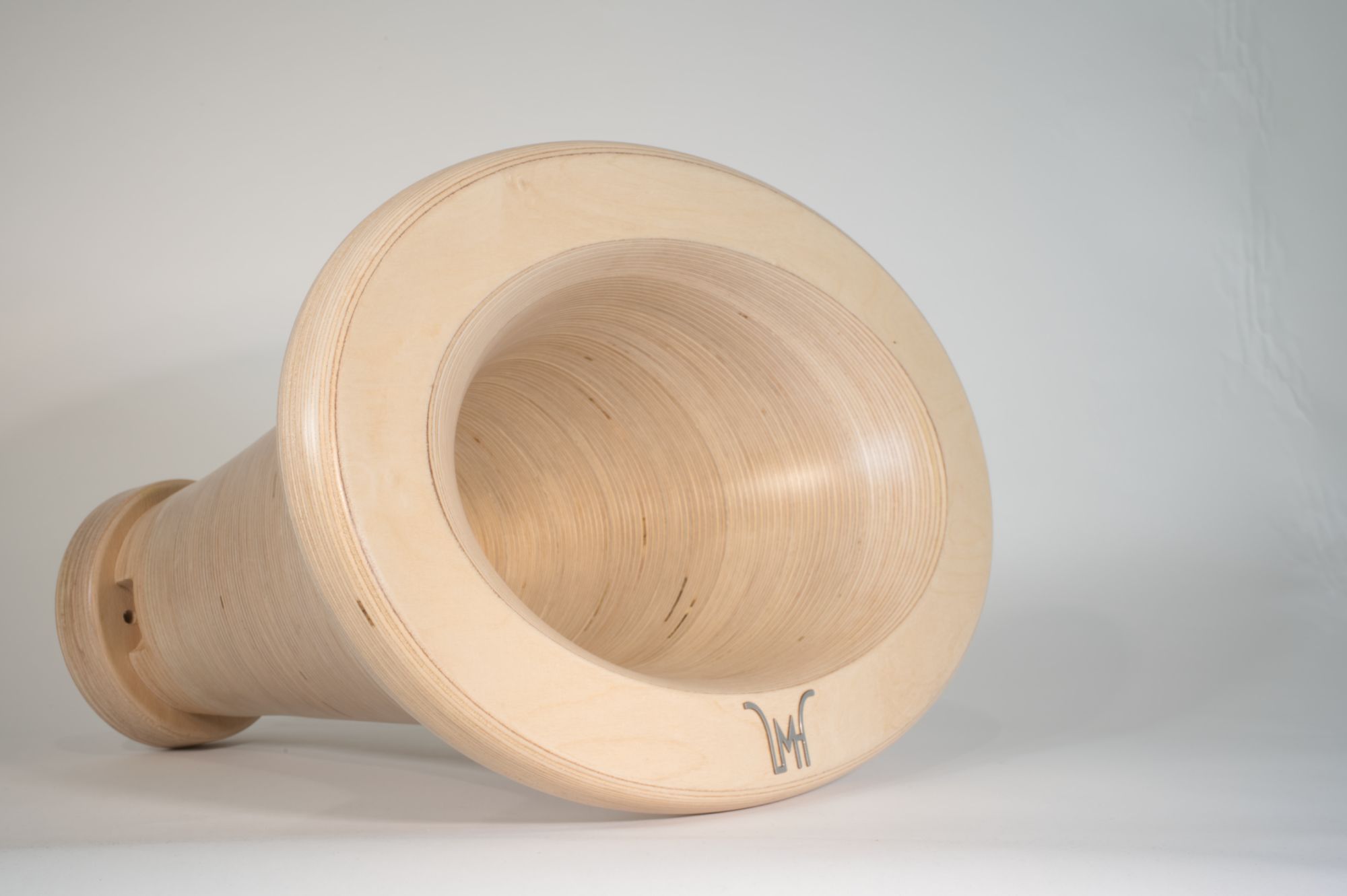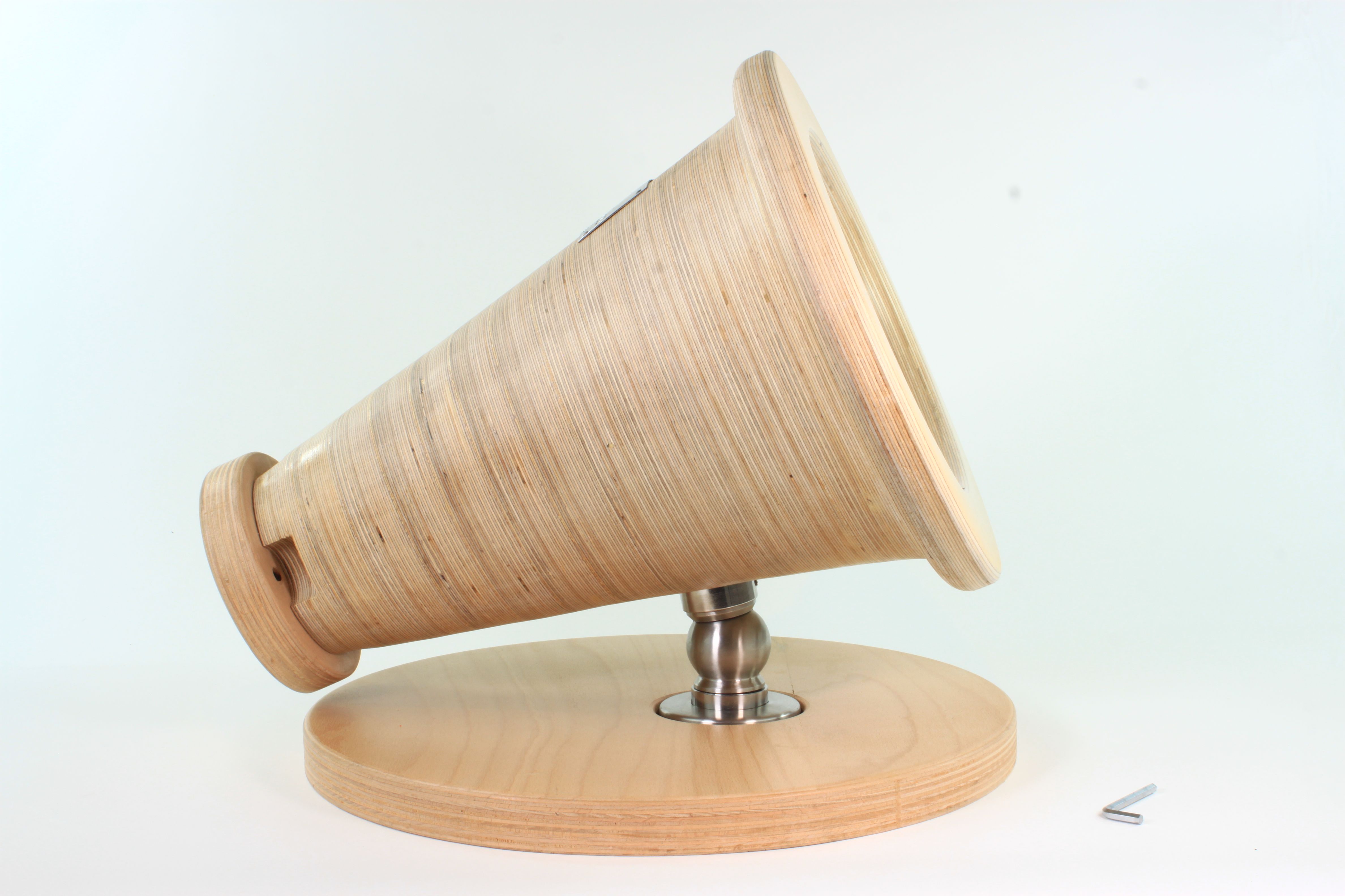 In einem speziell von uns entwickeltem Verfahren aus Vollholz gefertigte sphärisch-elliptische Mittel-Hochtonhörner höchster Güte.