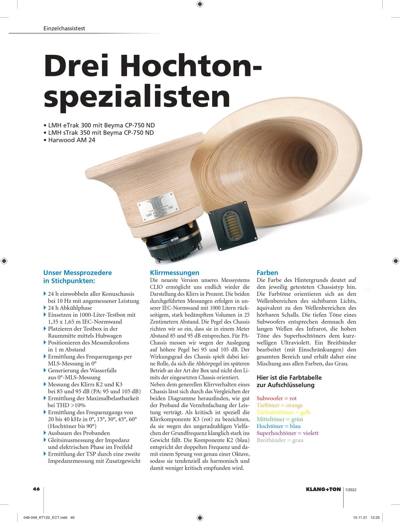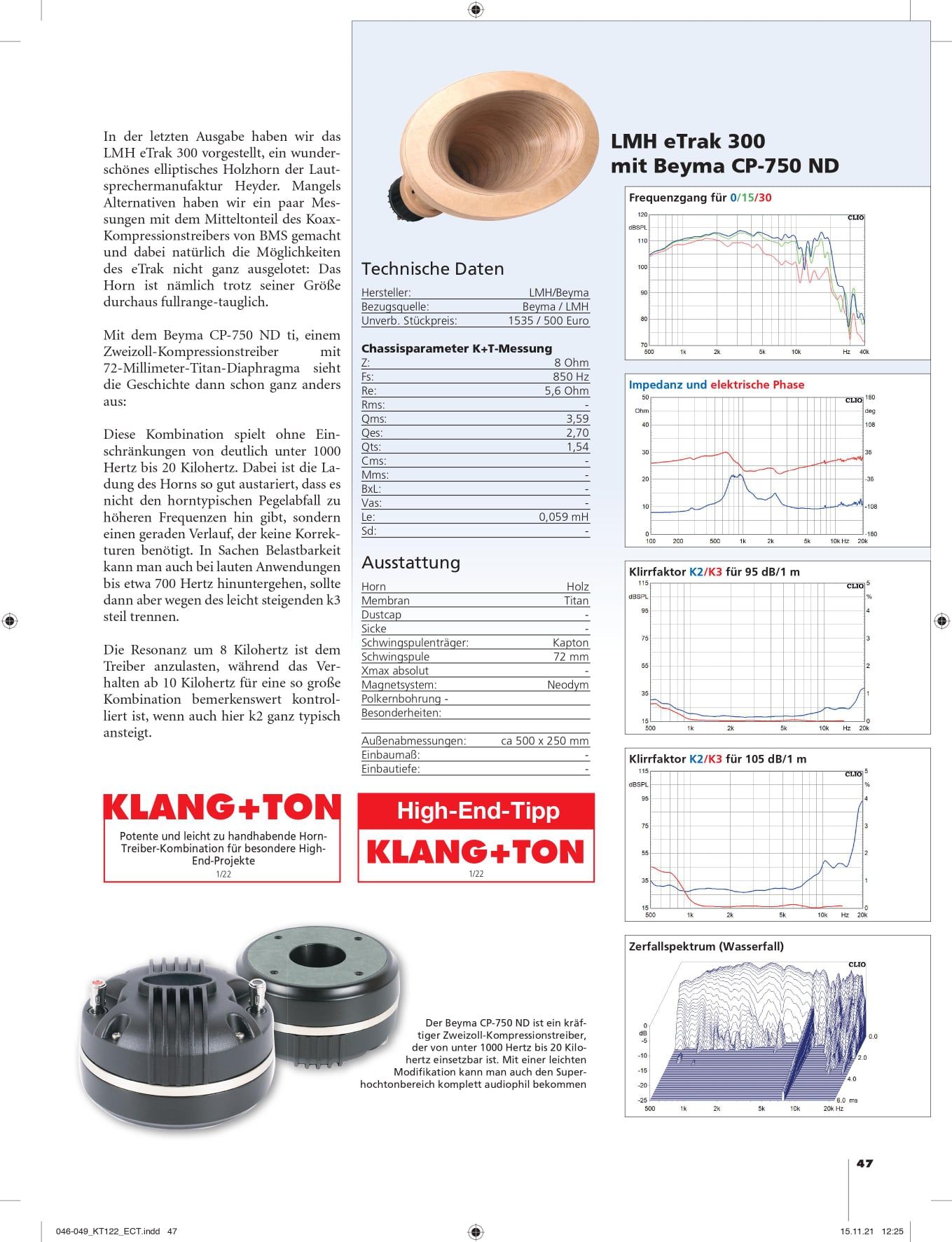 - Brillante Mitten & Höhen bis weit über die Hörgrenze (mit geeignetem Treiber). Echte Tractrix Öffnungsformel.