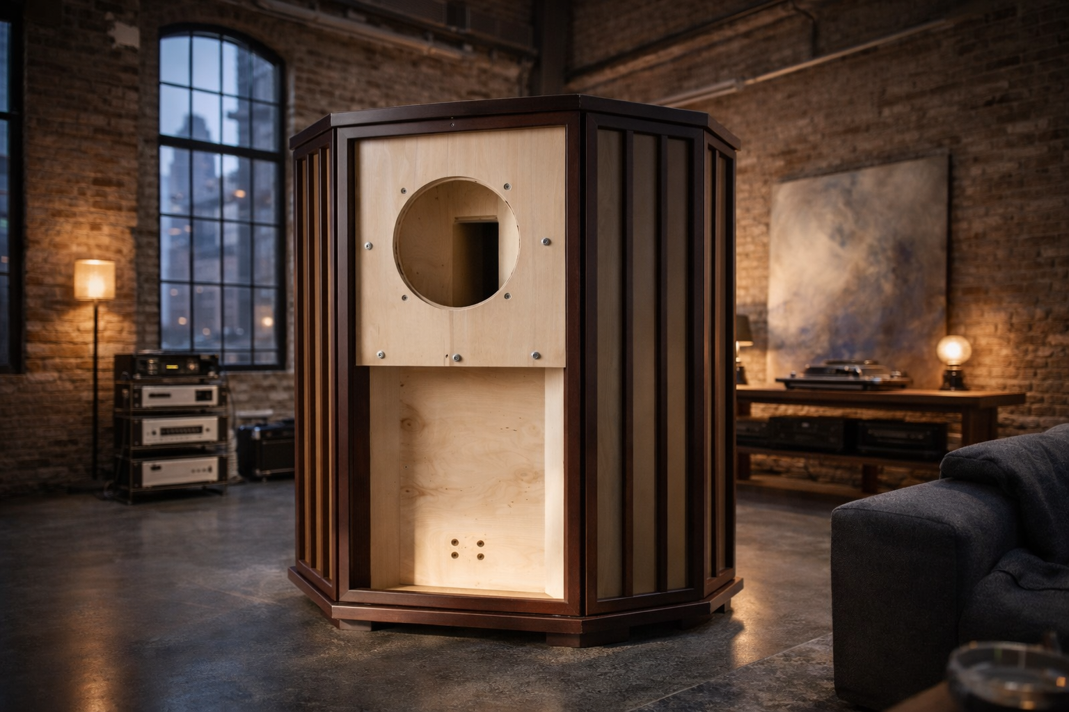 Wall thicknesses were deliberately generous to reduce cabinet resonances and to create a mechanically calm foundation for the driver.