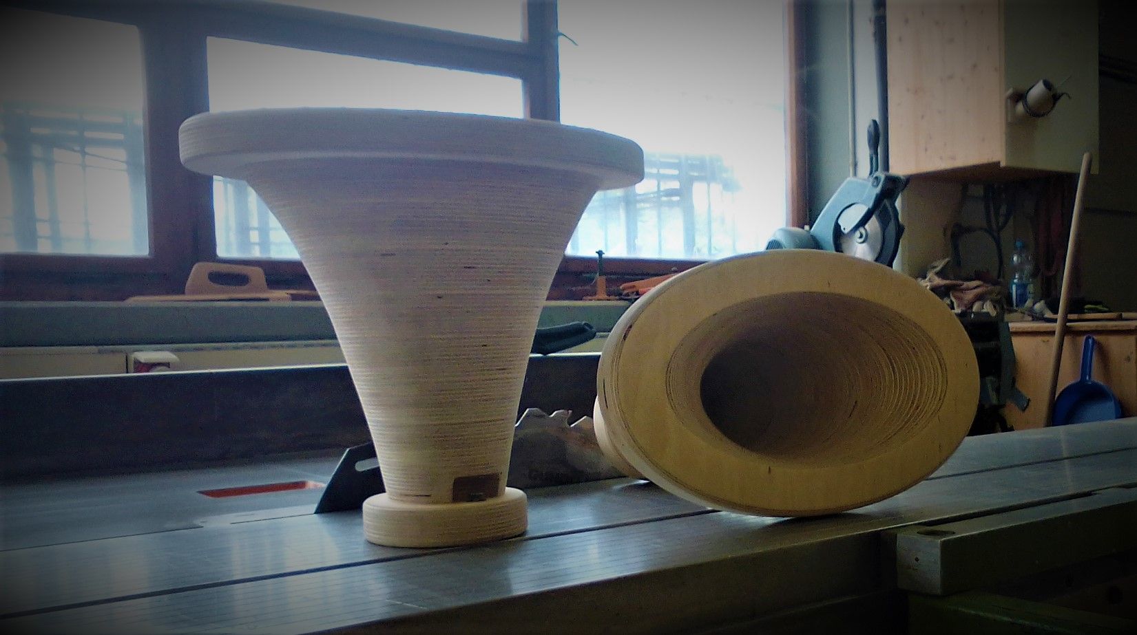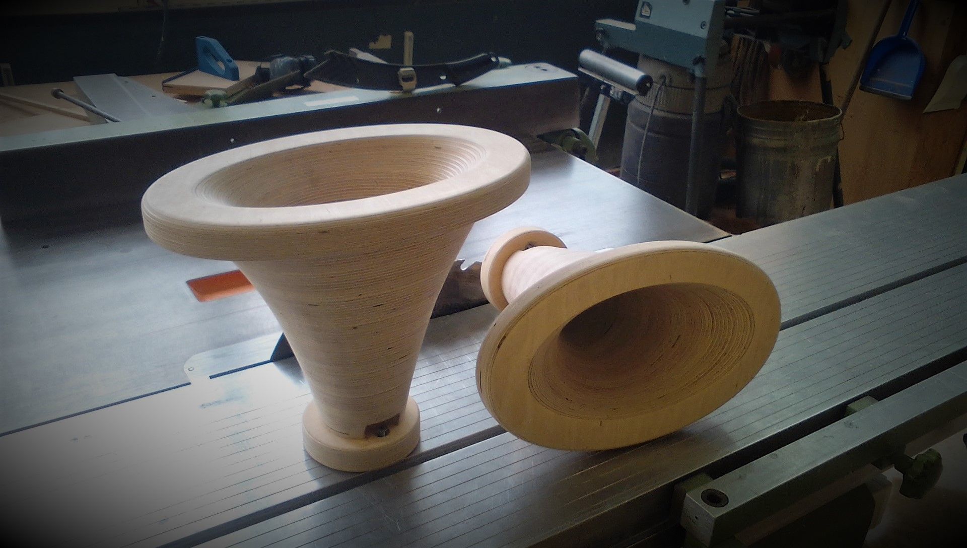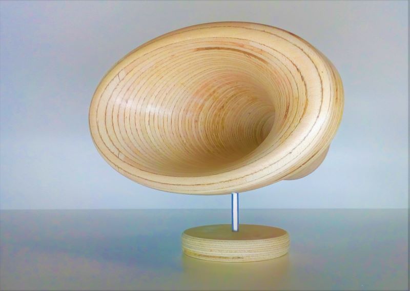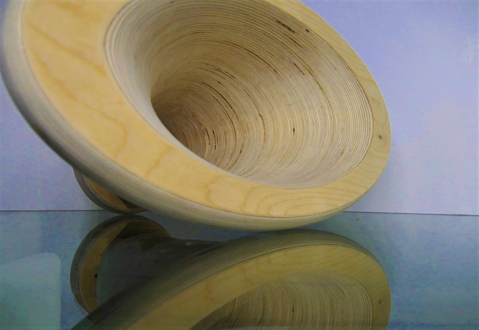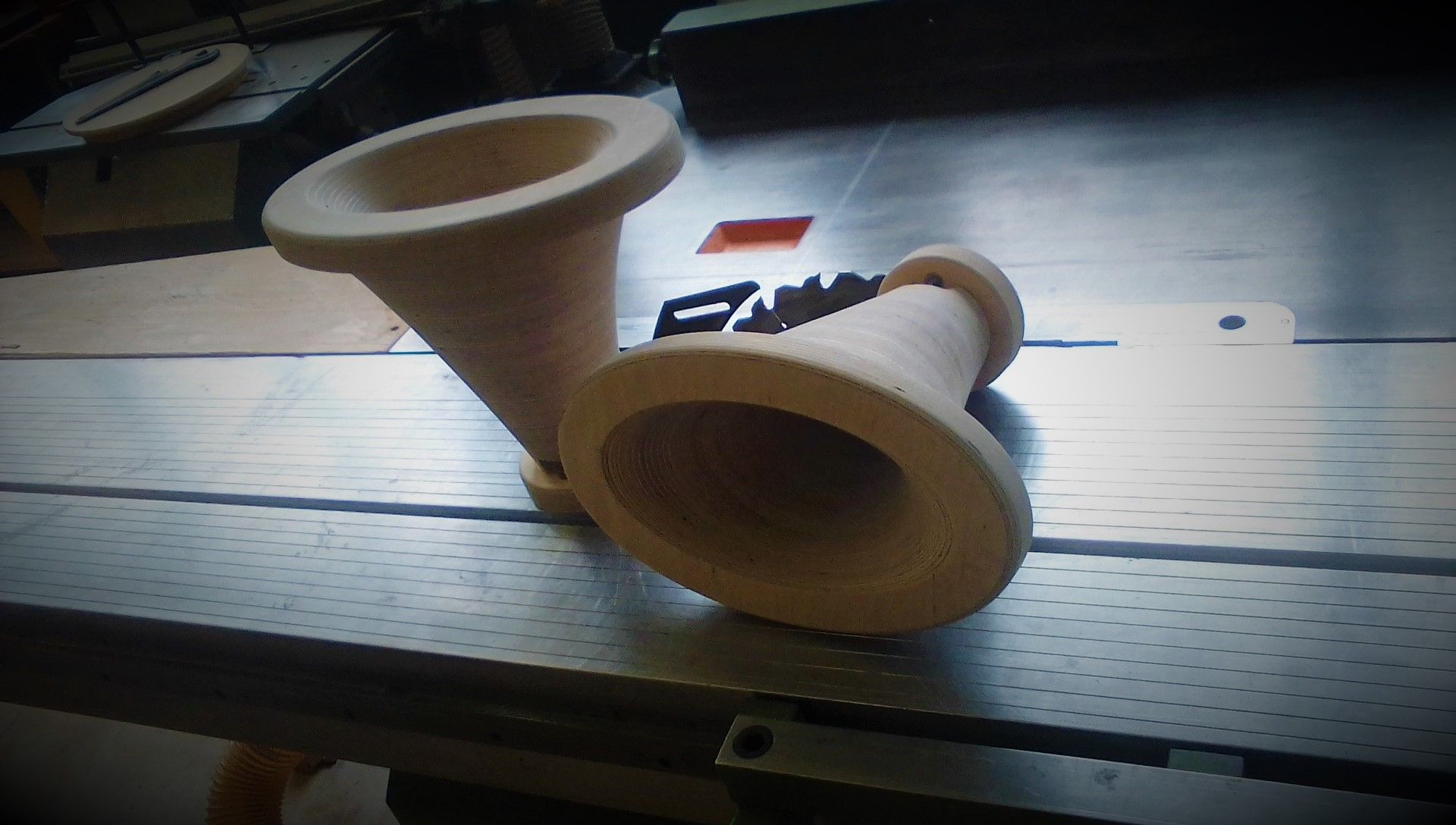 Elliptical Tractrix horns made of solid wood.