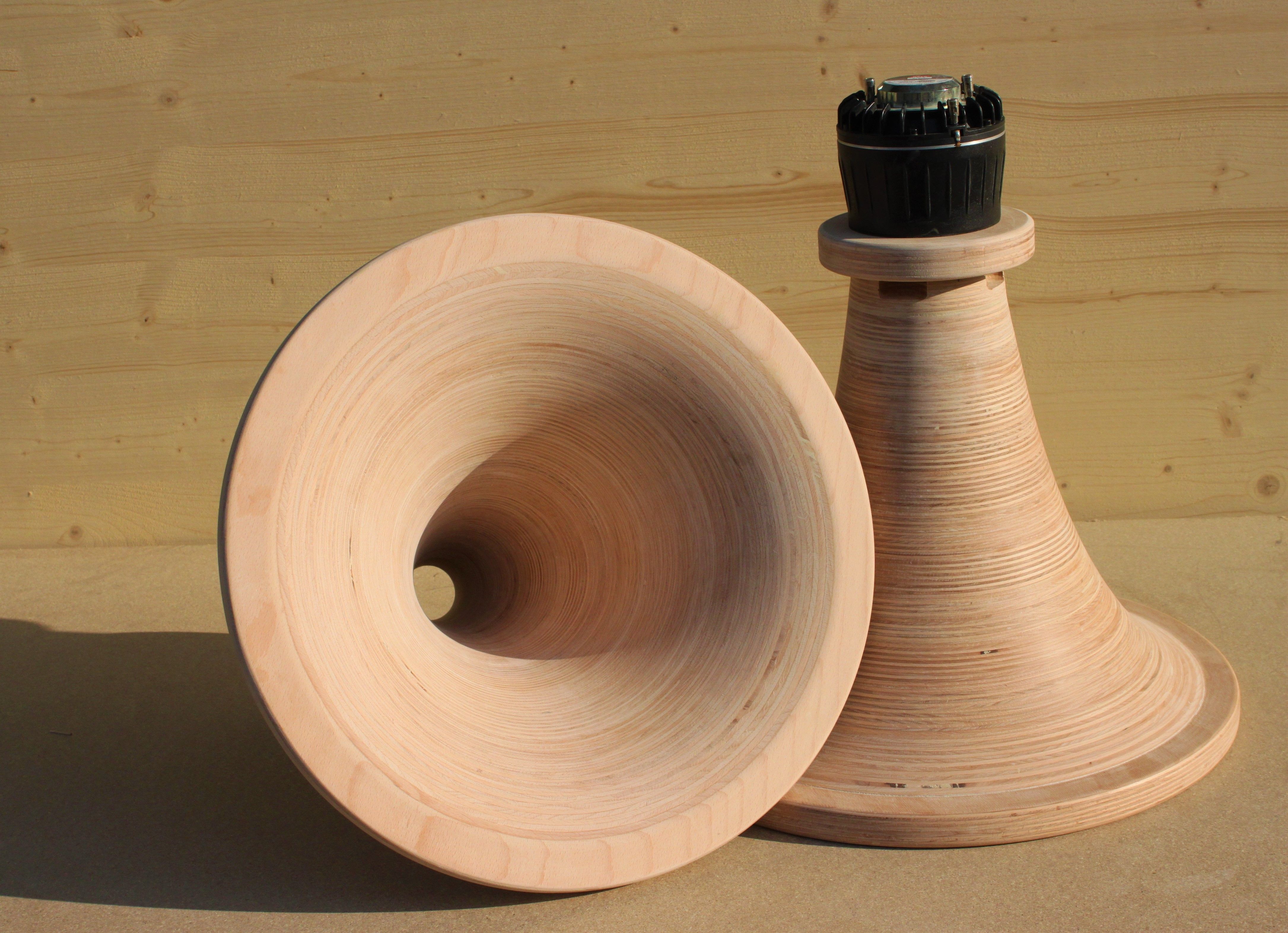 Sphärische Tractrix Hörner aus Massivholz. Absolut Resonanzarm - kein Hornklang mehr!