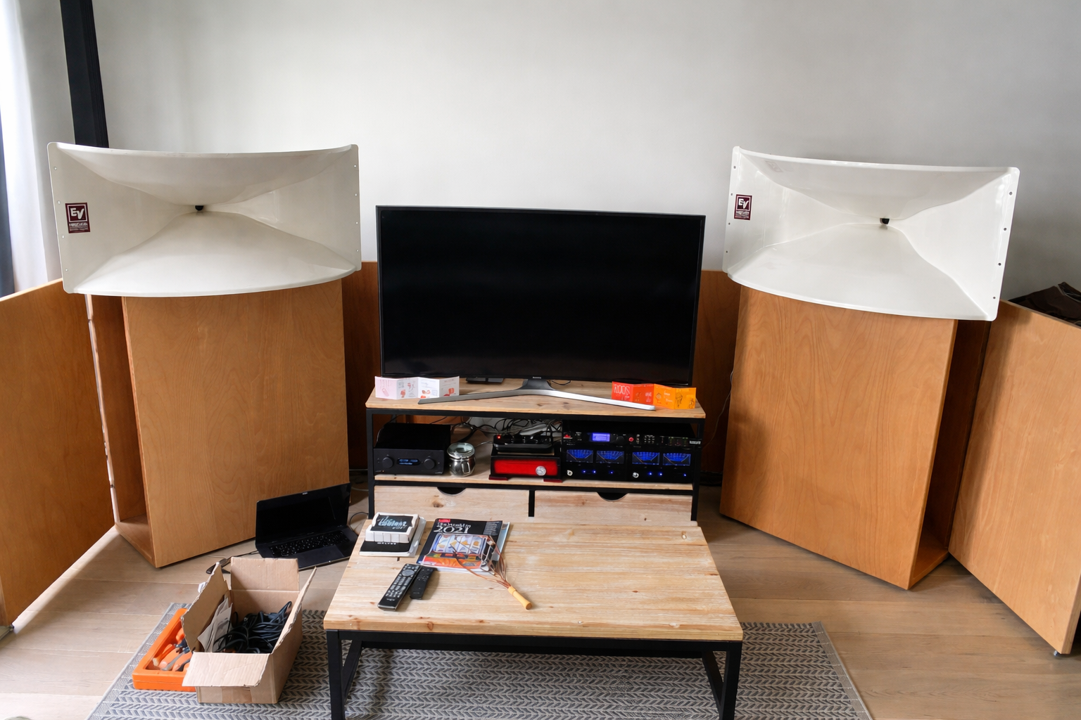 Das Eckhorn ist ein klassisches Hornlautsprecher-Konzept, das die Raumbegrenzungen gezielt als Teil des akustischen Systems nutzt.